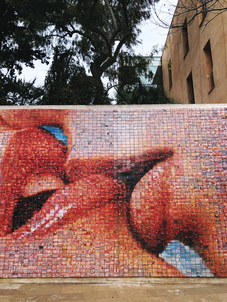 This mural is hidden in a narrow street opposite to the Barcelona Cathedral. Made from hundreds of square tiles, the artwork was created by Joan Fontcuberta. To save it on your Google Maps, search for the name ”El Beso”